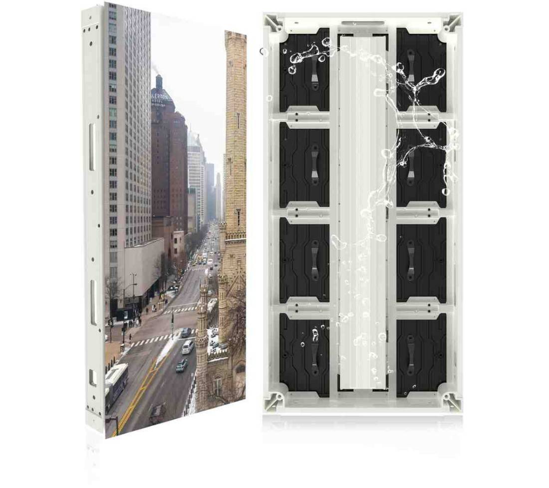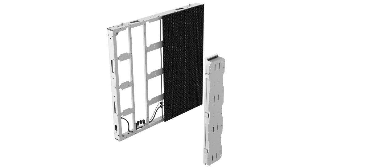 “Front-serviceable” means you can get to and swap out parts of the display like LED modules, receiving cards, power supplies, etc., from the front. This is useful when the display is mounted flat against a wall. You don’t need to leave extra room behind the display for access. It helps make repairs faster, keeps maintenance simple, saves money, and minimizes downtime.